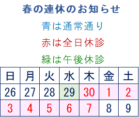 土曜日午後、日曜日の午前も治療しています。