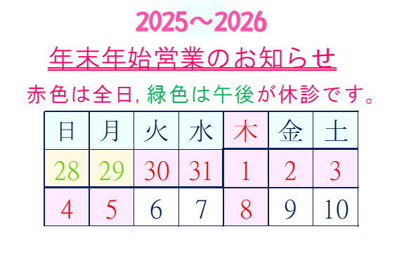 土曜日午後、日曜日の午前も治療しています。